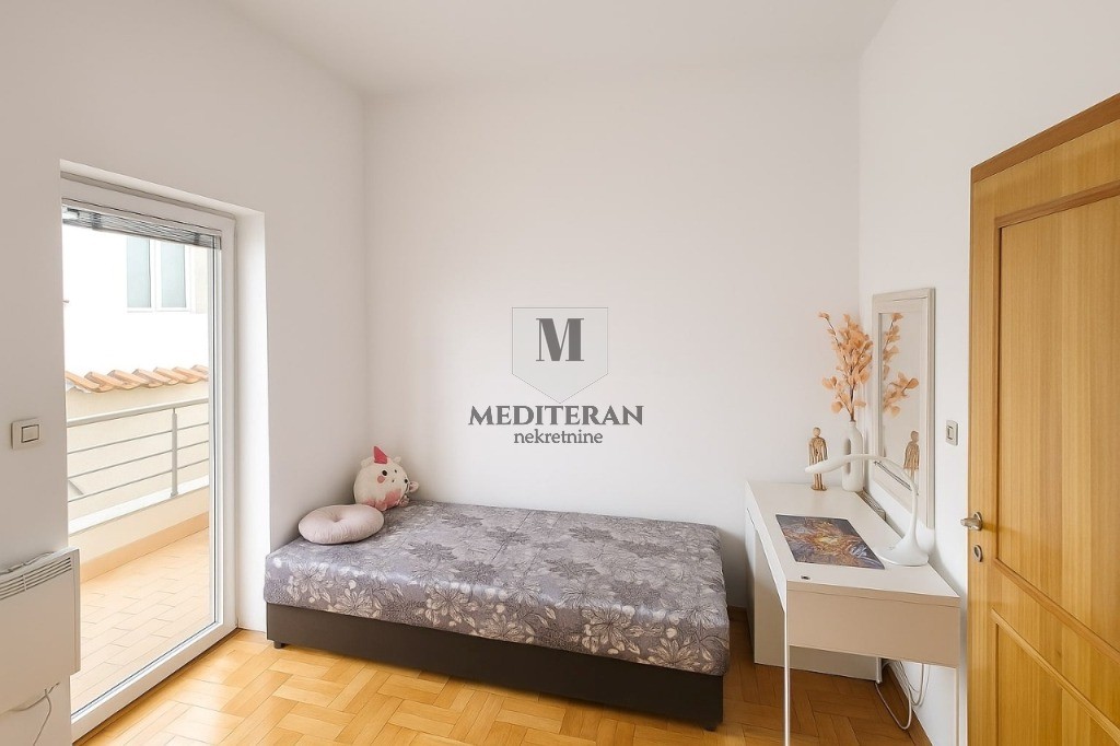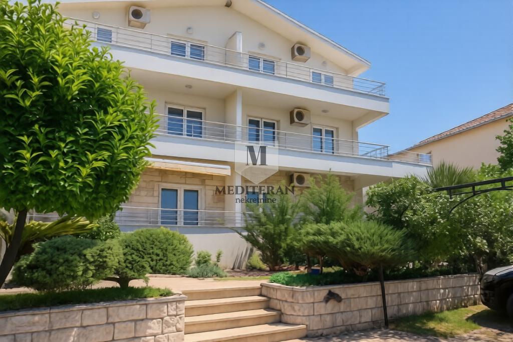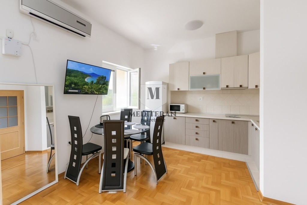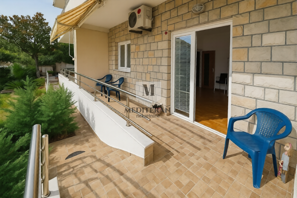 Smješten je na visokom prizemlju manjeg stambenog objekta sa lijepo uređenim i održavanim dvorištem,bazenom i mjestom za roštilj.Odlična lokacija stana na samo 300m od mora,šetališta
